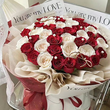 白色韩素纸层次包装花语:还记得我们的约定吗?“执子之手,与子偕老”!我们一直所希翼的天长地久,是两个人永远在一起恋爱、结婚、生子、老去。附送: