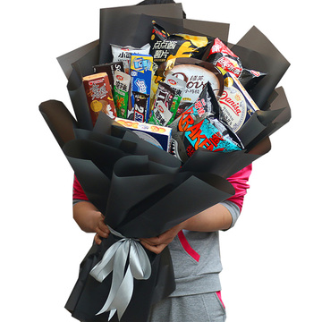 灰色韩素纸层次圆形包装,银色缎带束扎花语:你像是我世界里昼日的太阳,带给我的世界温暖,你也像是我世界里夜晚的明月,为我照亮了那漆黑的小道附送: