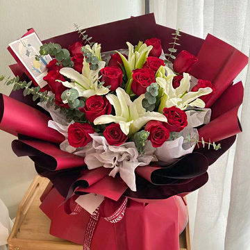 淡黄色雪梨纸内衬+红色欧雅纸韩式包装花语:为爱,每种颜色都该发出它光彩,亲爱的,别躲在阳光的背后,只剩下黑白;就是爱,每一个人都有权利去期待把爱放在手心,跟着我,这是我们最好的未来,让我们用爱,铸造出最完美的现在...ILoveYou.附送:
