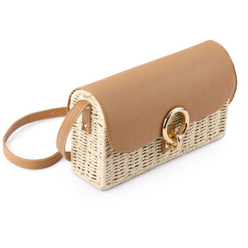 草编女士手提包单肩斜跨包包街头潮流草编包海边度假草编织包包 米白色