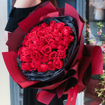 黑色纸内衬,外层红色韩素纸层次圆形包装,红色缎带束扎花语:我希望你,是我独家的记忆。谁也不行,从我这个身体中拉走你附送: