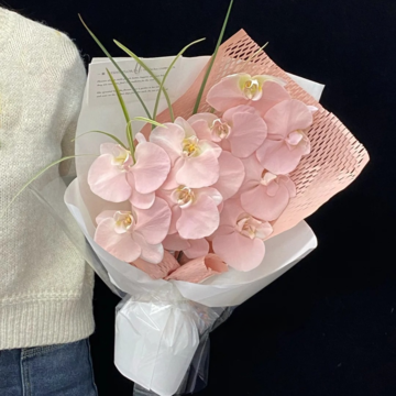 粉色双面欧雅纸扇形包装花语:洒上一抹微笑,缩短心与心的距离,奉上一份诚挚的祝福附送: