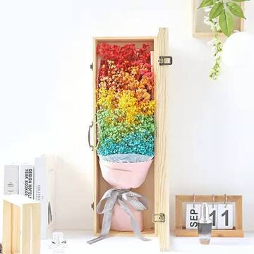 高档精致木盒花语:静水流深,沧笙踏歌,如花美眷,只缘感你一回顾,使我常思朝与暮。转身后,一缕幽香远,逝雪浅,春意浓,笑意深。一叶绽放一追寻,一花盛开一世界,一生相思为一人.附送: