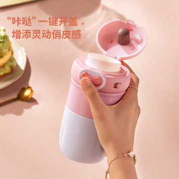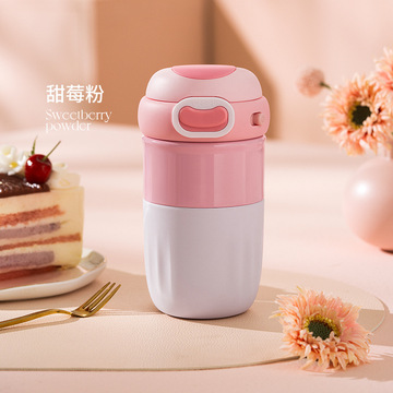 316不锈钢咖啡杯大肚保温杯女户外便携水杯可爱云豆杯子 甜莓粉