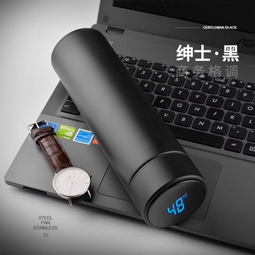 温显保温杯工厂304不锈钢真空直杯智能测温商务水杯 绅士黑【智能显温】