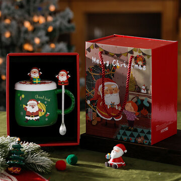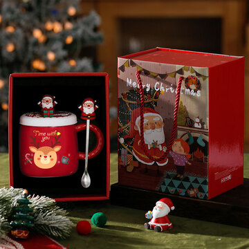 圣诞创意马克杯高颜值伴手礼小礼品 红杯(礼盒+硅胶盖+专属勺)