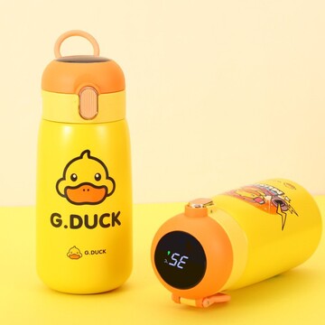 卡通保温杯316不锈钢水杯智能显温儿童水杯 呆萌小黄鸭